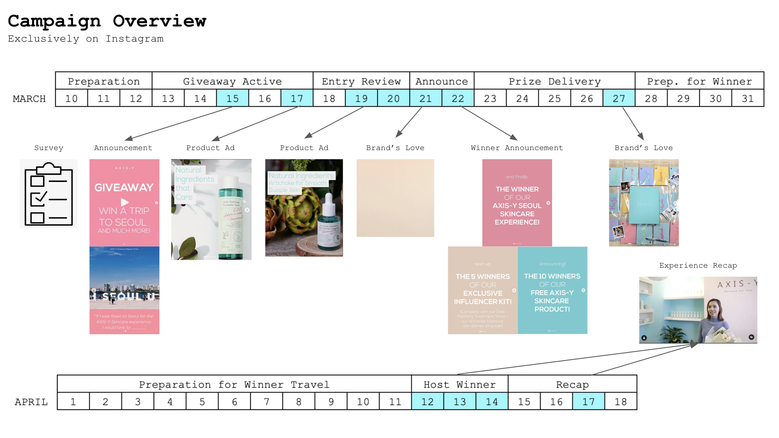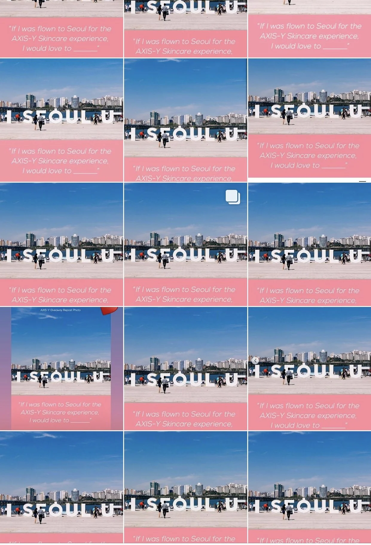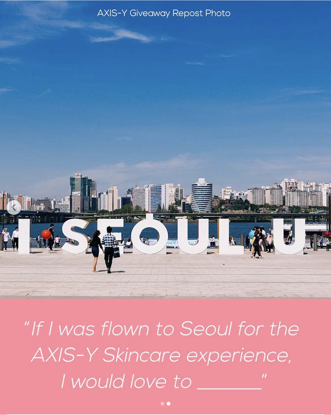 For a chance to win, participants were requested to repost a designated image answering the prompt “If I was flown to Seoul for the AXIS-Y Skincare Experience, I would love to ___,” tag three friends, and complete a qualitative and quantitative survey on our website.
